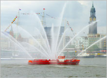 In fire fighting system, the external fire fighting system is to extinguish and suppress fires against external vessel. It is equipped with fire monitor.
