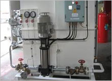 Using water droplets, caporization and decrease in oxygen concentration as suffocation, Extingushing effect become increased by cooling. The system has two types of local fire fighting system and total fire fighting system. Especially in case of local application it is designed and installed to cover main engine aux engine boiler, relevant protected area. In case UMA after fire happens using fire alarm system by detecting fire automatically. Water mist pump shall be runned. And water is discharged into fire area through nozzle to extinguish it. During spraying water audible and vusuble alarms are provided in the protected space.